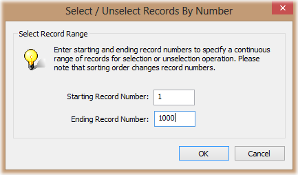 - Press OK button to apply record selection. Next, press OK button on "Specify Sorting Order" dialog to continue to main screen. Now processing will be limited to selected records only.